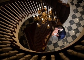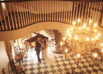 Embellished with a curved mahogany banister, checkered charcoal grey and white marble floors and a grand antique brass chandelier, the grand staircase and foyer at The Royalton Mansion won’t fail to impress your guests from the moment they come through its sumptuous mahogany doors.